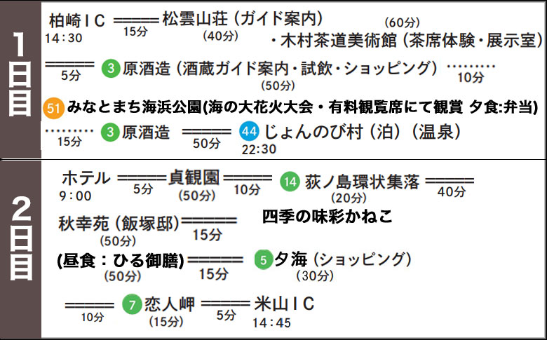 柏崎で開催される全国的に有名なイベントに合わせた三園めぐりコースです。